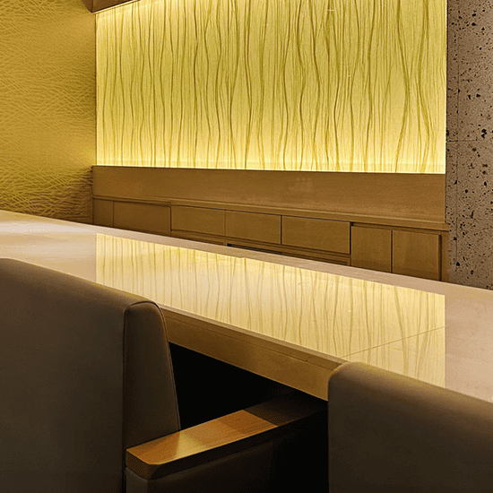 落ち着いた照明と上質なインテリアが調和した、上品で開放的な空間。